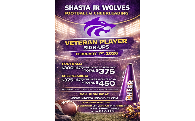 Shasta Jr Wolves Youth Football & Cheer P.O. Box 990058 Redding, California 96099